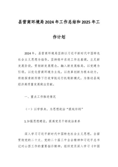 / 县营商环境局2024年工作总结和2025年工作计划
