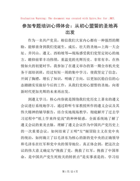 / 参加专题培训心得体会:从初心盟誓的圣地再出发