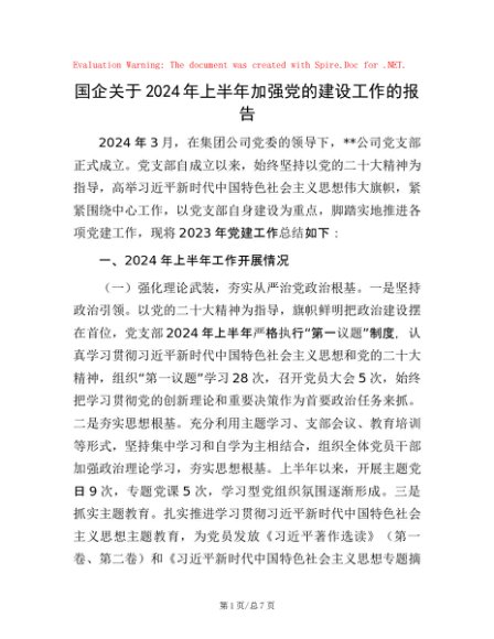 / 国企关于2024年上半年加强党的建设工作的报告
