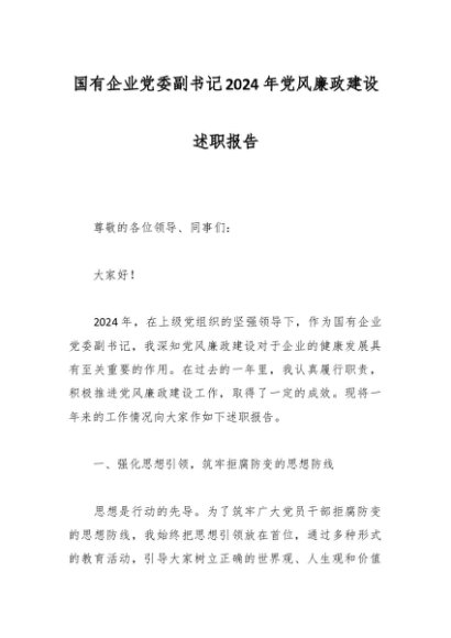/ 国有企业党委副书记2024年党风廉政建设述职报告