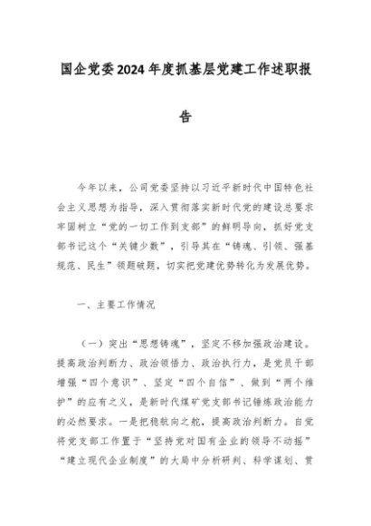 / 国企党委2024年度抓基层党建工作述职报告