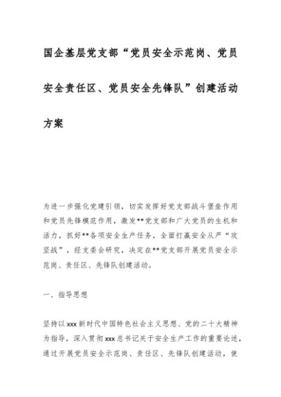 / 国企基层党支部“党员安全示范岗、党员安全责任区、党员安全先锋队”创建活动方案