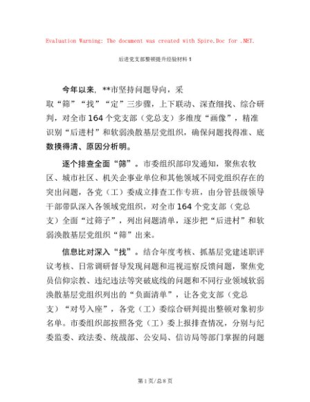 / 后进党支部整顿提升经验材料汇编