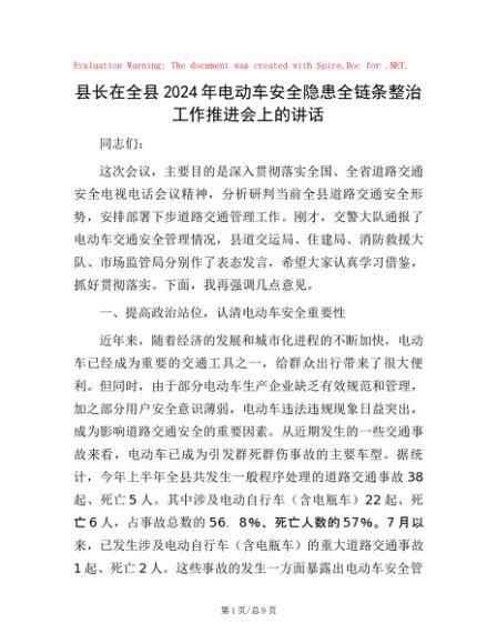 / 县长在全县2024年电动车安全隐患全链条整治工作推进会上的讲话