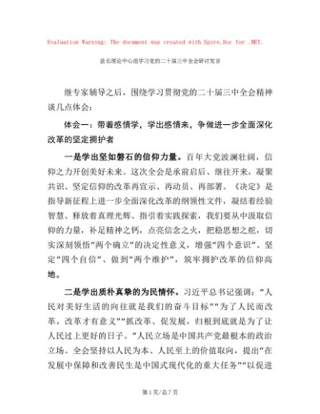 / 县长理论中心组学习党的二十届三中全会研讨发言
