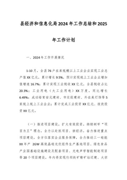 / 县经济和信息化局2024年工作总结和2025年工作计划