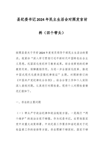 / 县纪委书记2024年民主生活会对照发言材料(四个带头)