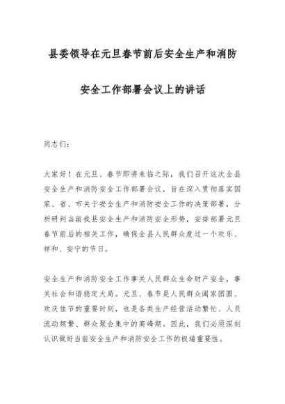 / 县委领导在元旦春节前后安全生产和消防安全工作部署会议上的讲话