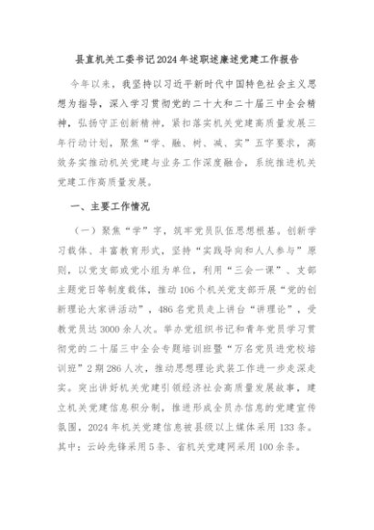 / 县直机关工委书记2024年述职述廉述党建工作报告