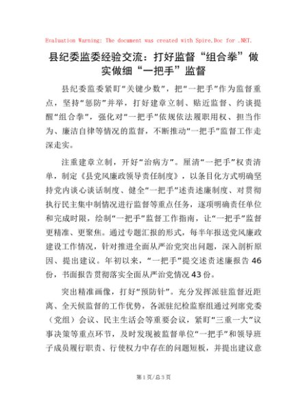 / 县纪委监委经验交流:打好监督“组合拳” 做实做细“一把手”监督