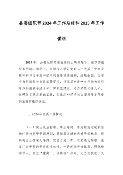 / 县委组织部2024年工作总结和2025年工作谋划