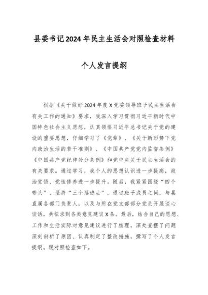/ 县委书记2024年民主生活会对照检查材料个人发言提纲