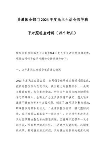 / 县属国企部门2024年度民主生活会领导班子对照检查材料(四个带头)
