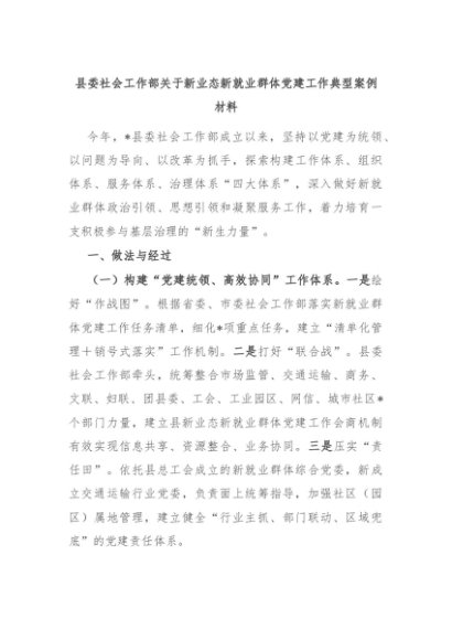 / 县委社会工作部关于新业态新就业群体党建工作典型案例材料