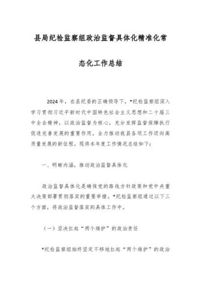 / 县局纪检监察组政治监督具体化精准化常态化工作总结