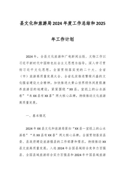 / 县文化和旅游局2024年度工作总结和2025年工作计划
