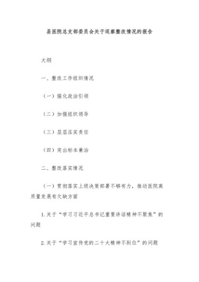 / 县医院总支部委员会关于巡察整改情况的报告