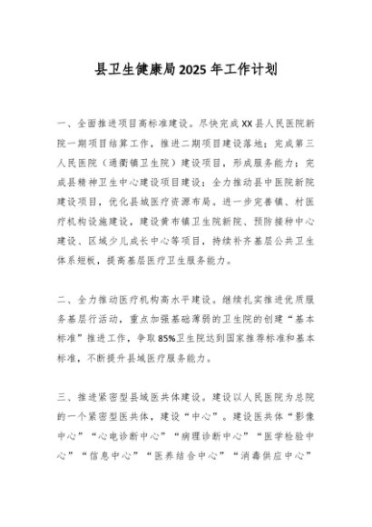 / 县卫生健康局2025年工作计划