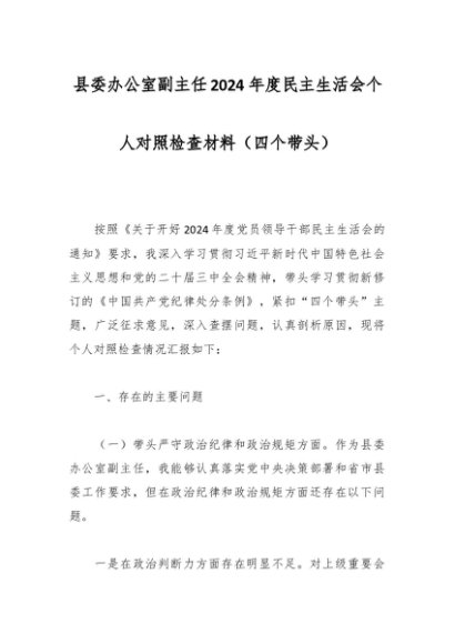 / 县委办公室副主任2024年度民主生活会个人对照检查材料(四个带头)