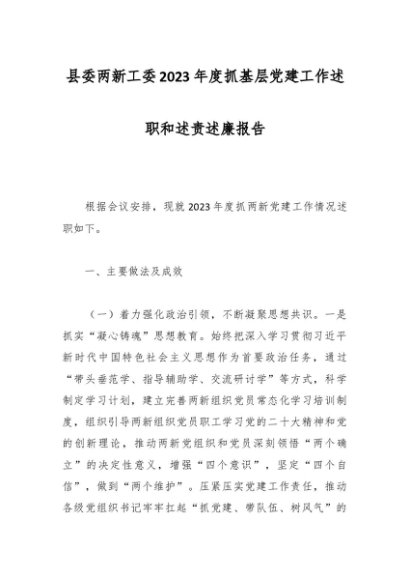 / 县委两新工委2023年度抓基层党建工作述职和述责述廉报告 (1)