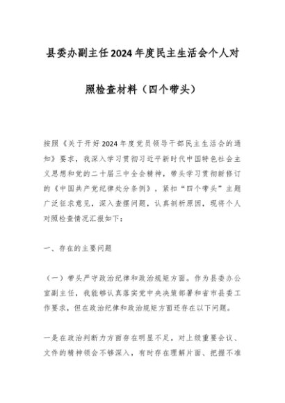 / 县委办副主任2024年度民主生活会个人对照检查材料(四个带头)