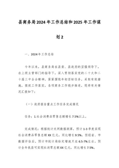 / 县商务局2024年工作总结和2025年工作谋划2