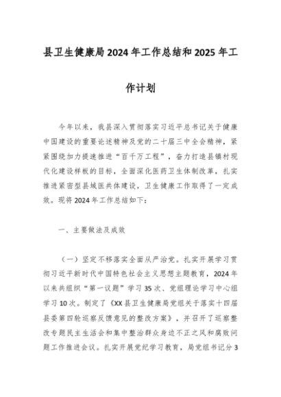 / 县卫生健康局2024年工作总结和2025年工作计划