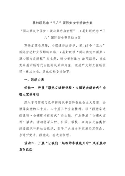 / 县妇联纪念“三八”国际妇女节活动方案