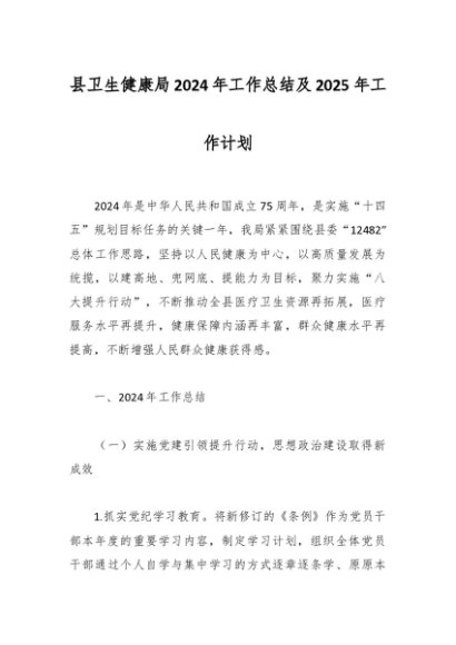/ 县卫生健康局2024年工作总结及2025年工作计划