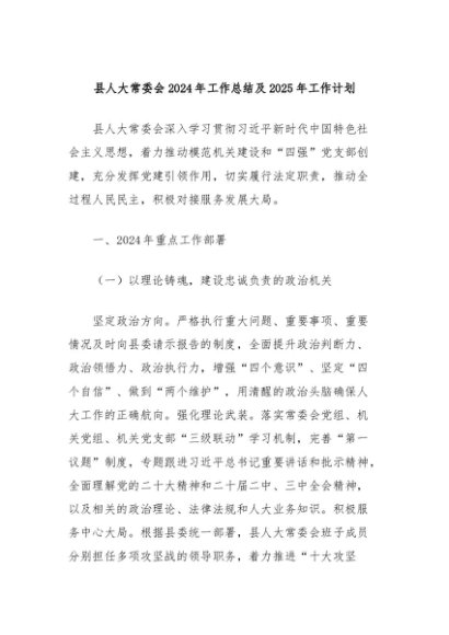 / 县人大常委会2024年工作总结及2025年工作计划