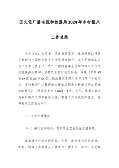 / 区文化广播电视和旅游局2024年乡村振兴工作总结