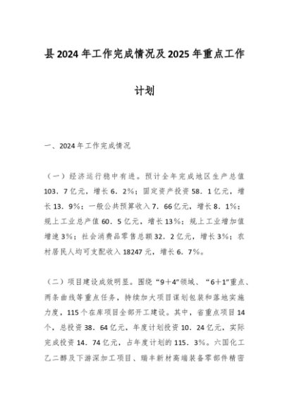 / 县2024年工作完成情况及2025年重点工作计划