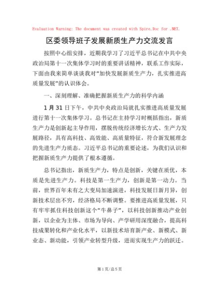 / 区委领导班子发展新质生产力交流发言