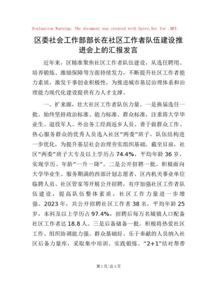 / 区委社会工作部部长在社区工作者队伍建设推进会上的汇报发言