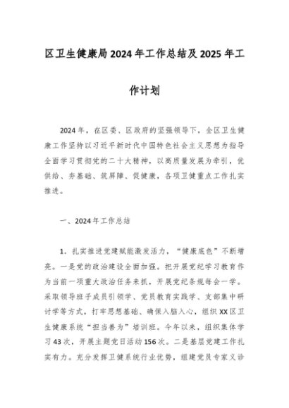 / 区卫生健康局2024年工作总结及2025年工作计划