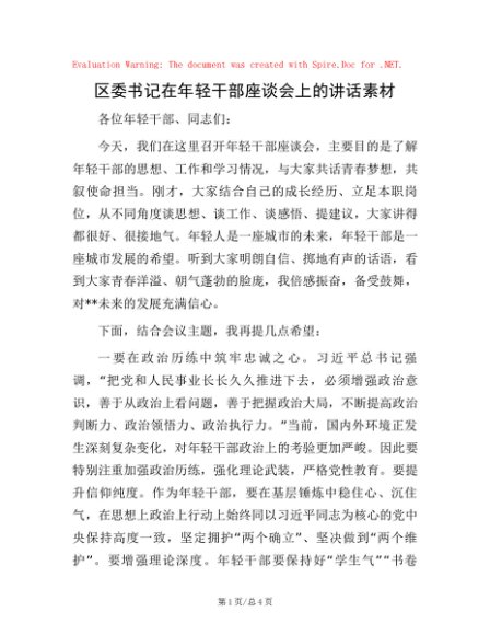/ 区委书记在年轻干部座谈会上的讲话素材