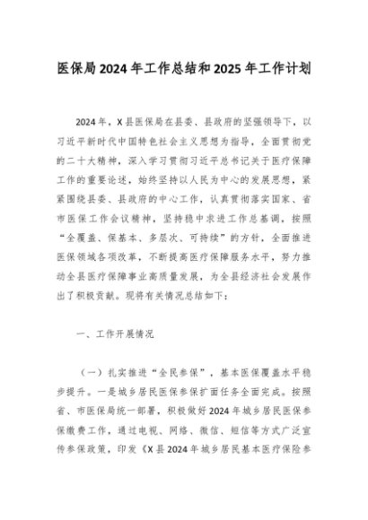 / 医保局2024年工作总结和2025年工作计划