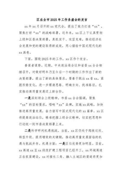 / 区在全市2025年工作务虚会的发言