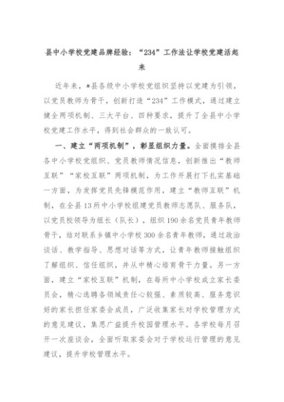 / 县中小学校党建品牌经验:“234”工作法让学校党建活起来