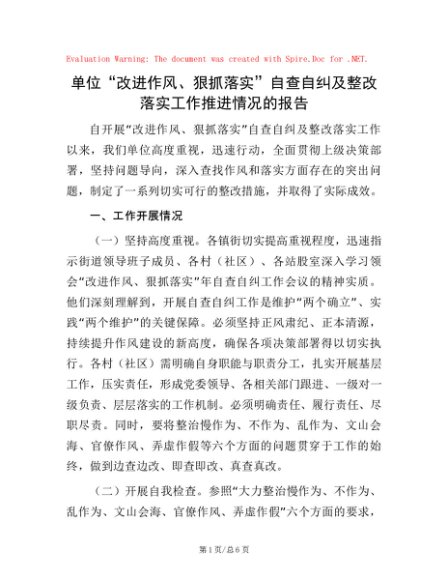 / 单位“改进作风、狠抓落实”自查自纠及整改落实工作推进情况的报告