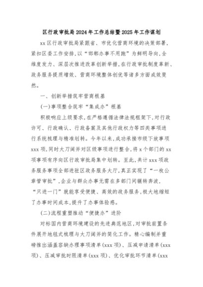 / 区行政审批局2024年工作总结暨2025年工作谋划
