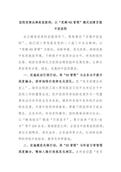 / 医院党建品牌典型案例:以“党建+8S管理”模式创建百强中医医院