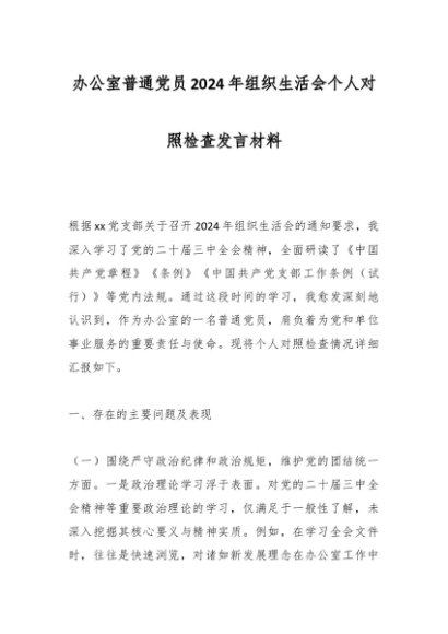 / 办公室普通党员2024年组织生活会个人对照检查发言材料