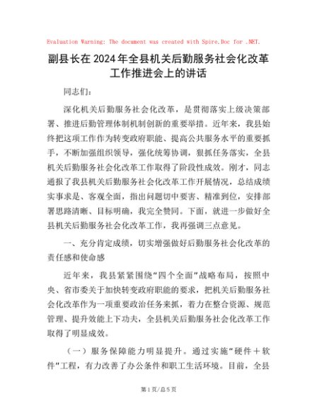/ 副县长在2024年全县机关后勤服务社会化改革工作推进会上的讲话