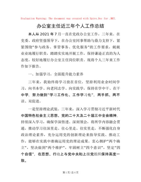 办公室主任近三年个人工作总结