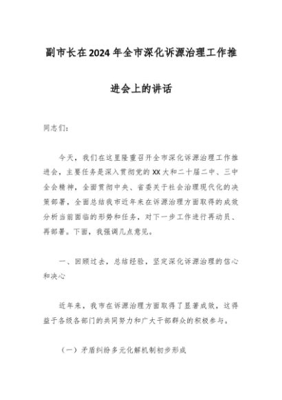 / 副市长在2024年全市深化诉源治理工作推进会上的讲话