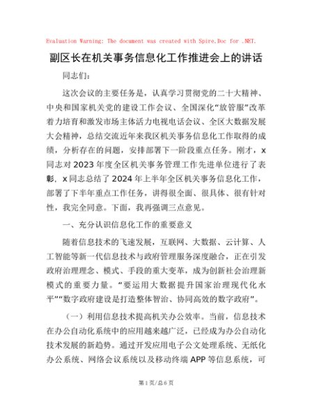 / 副区长在机关事务信息化工作推进会上的讲话