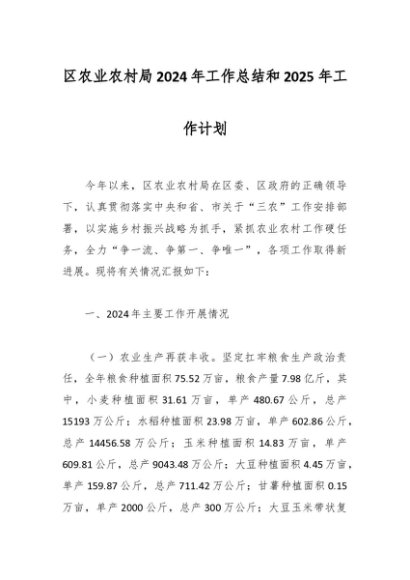 / 区农业农村局2024年工作总结和2025年工作计划