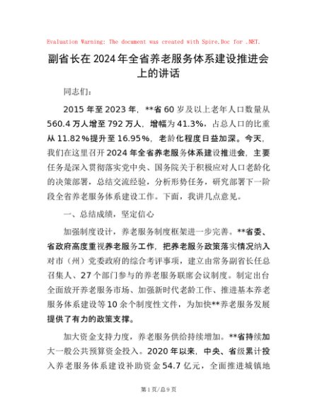 / 副省长在2024年全省养老服务体系建设推进会上的讲话