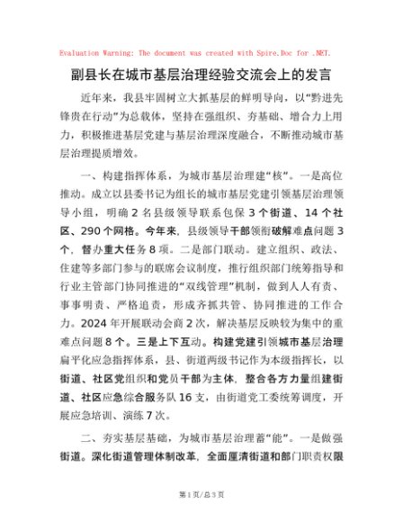 / 副县长在城市基层治理经验交流会上的发言